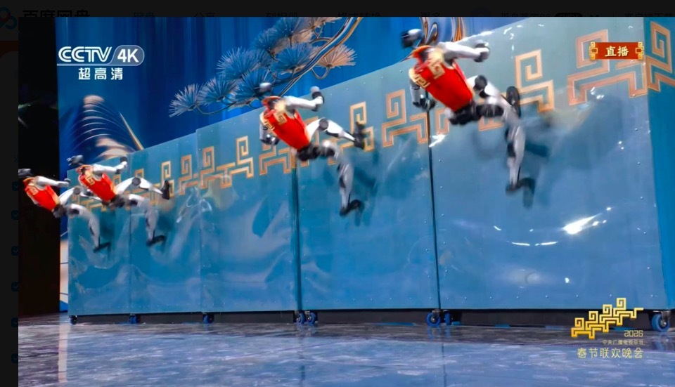 春晚舞台上,两台“小顽童N2”接连完成侧手翻、空翻,平稳落地。另一边,不同于僵硬的直接摆臂起跑,“小布米”达到一定速度后,才自然地抬起双臂,呈现出了高度拟人的流畅跑步姿态。